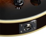 It is painted in a dark violin sunburst gloss finish and comes set up with bronze strings. The instrument offers a balanced tone which can be amplified using its built-in magnetic pickup and 1/4" / 6.35mm output jack, while onboard volume and tone controls let you further shape the amplified sound, allowing it to be heard in any live situation.